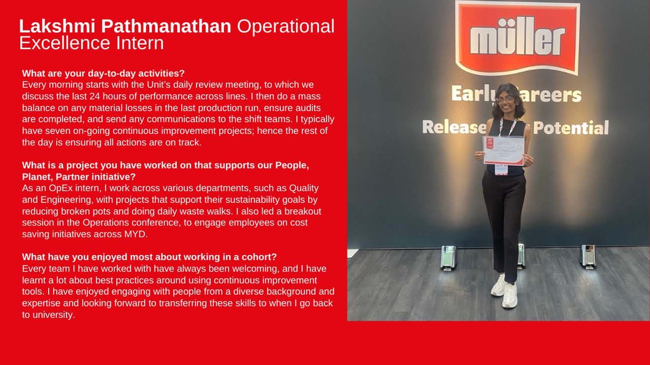 Müller Milk & Ingredients (MMI), Müller Yogurt & Desserts (MYD), and Müller Milk & Ingredients Distribution (MMID). MMI is all about producing milk, cream, butter, milk drinks, and dairy ingredients from 1,300 British farms (plus a plant-based range!). MYD is the team behind favourites like Müller Corner, Müller Light, Müller Rice, and more—putting smiles on faces with every spoonful. And MMID? They’re the logistics legends, delivering over 1 billion litres of milk every year to more than 5,500 locations across the UK, making sure everything flows smoothly from farm to fridge. Together, we’re growing fast, powered by passionate people who care about quality, sustainability, and making every day delicious.